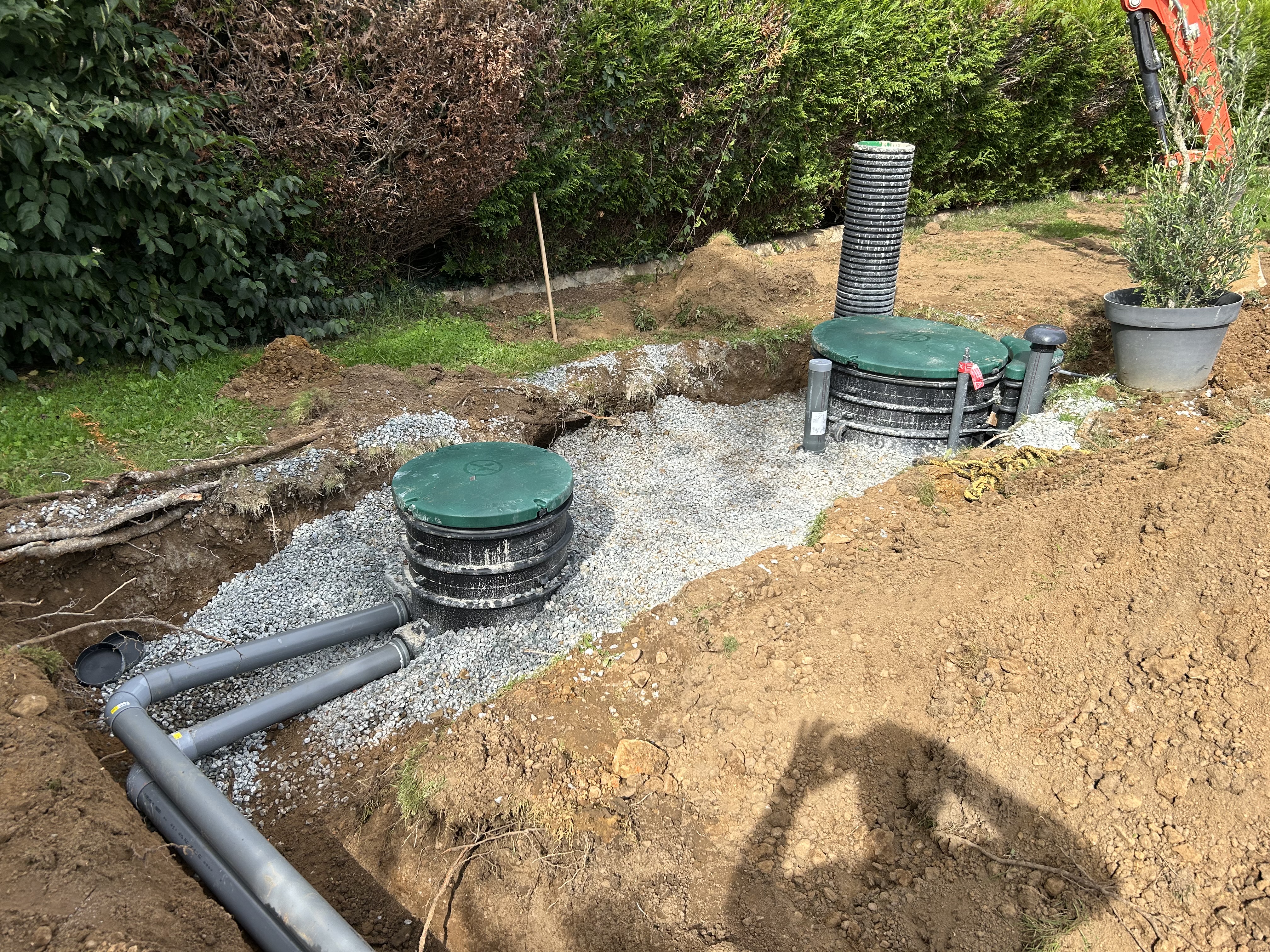 J’assure vos travaux de VRD (Voirie et Réseaux Divers) ainsi que les raccordements nécessaires au bon fonctionnement de votre habitation ou de vos aménagements extérieurs. Cela comprend la création de tranchées, la pose de réseaux et le raccordement aux différents systèmes : eau potable, électricité, évacuation des eaux usées et pluviales.