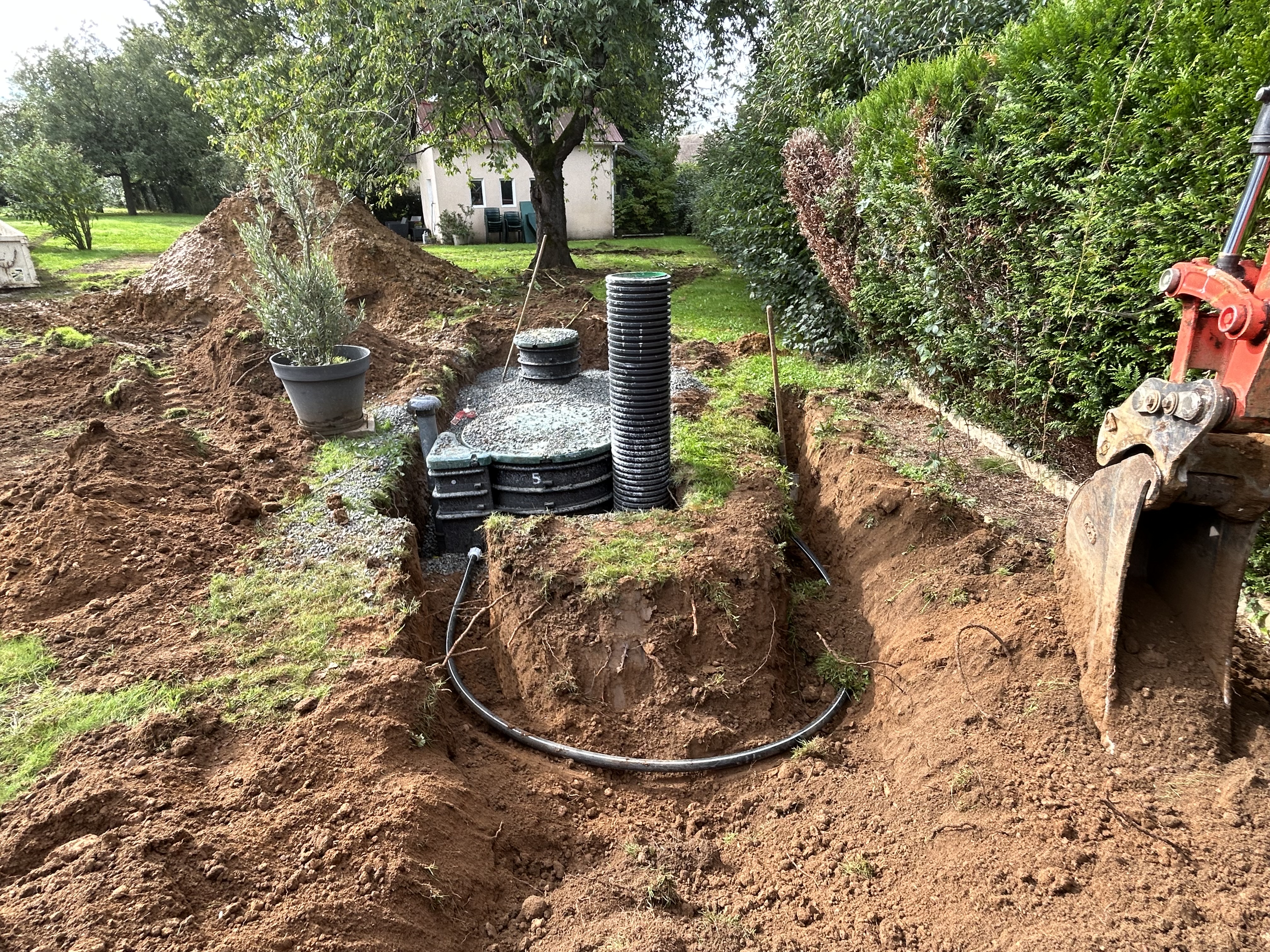Je prends en charge l’installation complète de votre système d’assainissement autonome, en fonction des contraintes de votre terrain et des exigences réglementaires. J’interviens pour la pose de fosses toutes eaux, la réalisation de tranchées d’épandage et l’installation de postes de relevage si nécessaire.